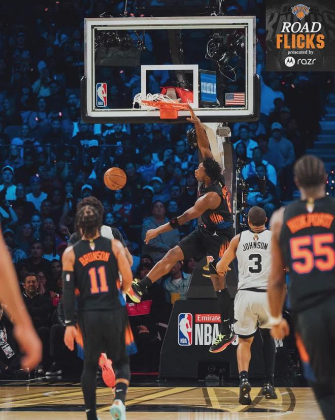 第四節唐斯再次登場,今天真的拼了。克拉克森連續外線開炮,尼克斯打出一波21-11完成反超,末節最后4分鐘尼克斯領先5分。馬刺打得太亂了,文班一次單打唐斯不中,一次三分搶投偏出。卡斯爾底線球失誤,福克斯運球被斷。