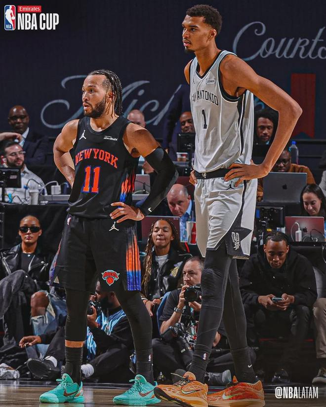 最后1分鐘,尼克斯領先8分。馬刺大勢已去,全場結束,尼克斯124-113戰勝馬刺,奪得第三屆NBA杯冠軍。阿努諾比28分9板3助、布倫森25分4板8助2帽、唐斯16分11板、克拉克森15分。哈珀21分7板、文班亞馬18分6板2帽。