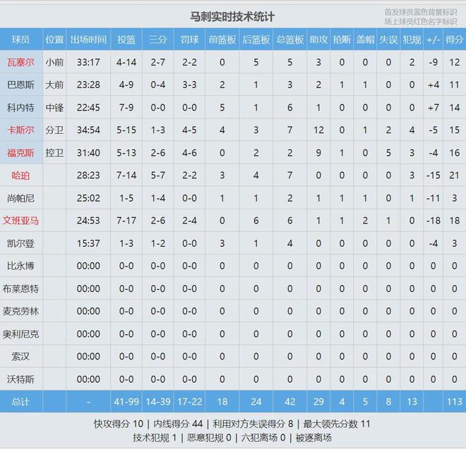 馬刺末節崩盤,單節19-35輸了16分,文班亞馬末節4中0。最后看看數據,說說你的感受: